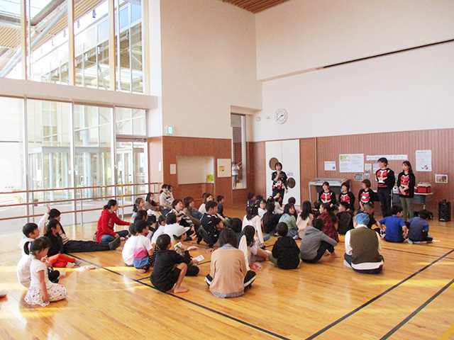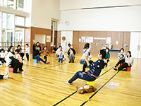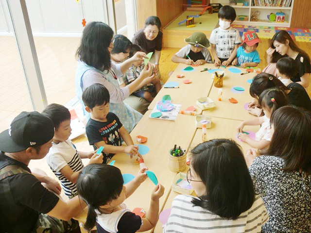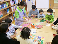 多くの幼児親子が参加してくださり、遊戯室は満杯でした!新聞を使ってキャッチしたりくぐったり、体全体を使ってあそびました。ママたちの声掛けも素晴らしく、子どもたちのやる気倍増!きっとお昼寝たくさんできたはず! |